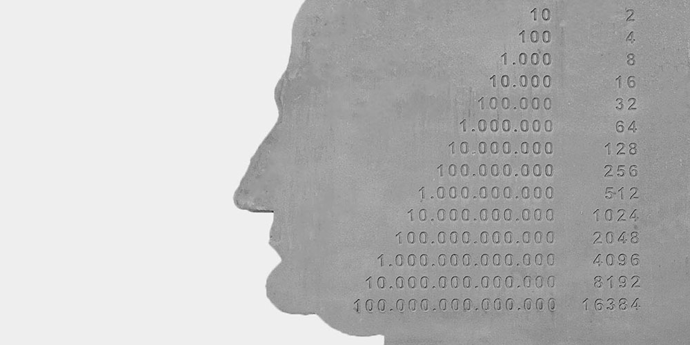 Stefan Schwertfeger, has designed a steel sculpture in the form of an imposing silhouette that reveals the striking profile of this last polymath. Complemented by a list of numbers, it refers to one of his most ground-breaking achievements: the binary system - the basis of the modern digital world.